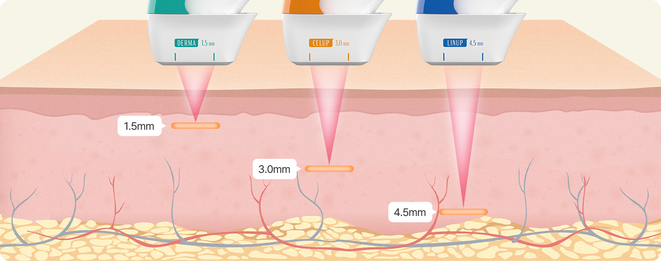 진피층부터 근막층(SMAS)까지 피부층별로 에너지를
